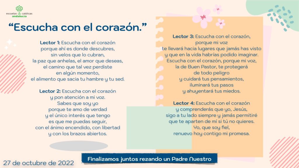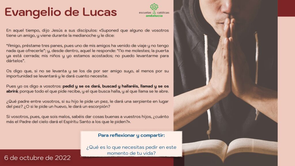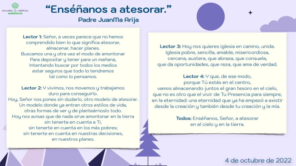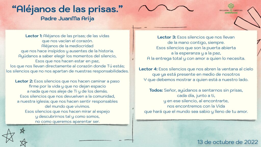Os presentamos, unas oraciones que el profesorado utiliza cada jornada para hacer reflexionar y orar al alumnado.