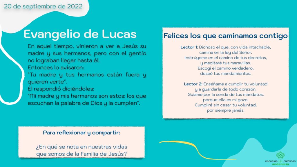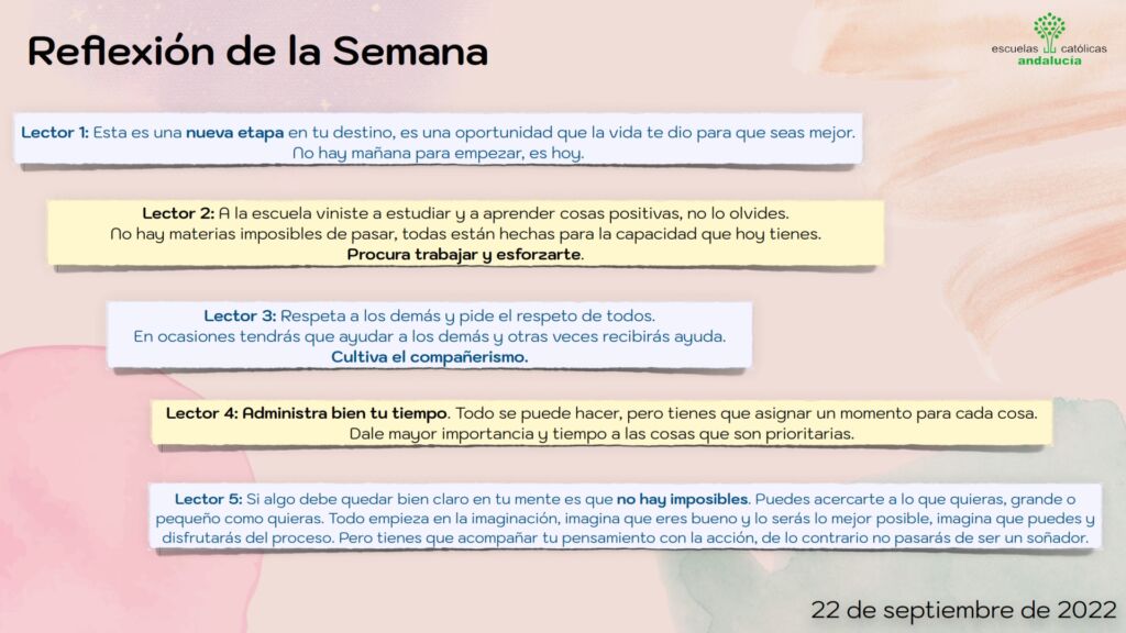 Os presentamos, unas oraciones que el profesorado utiliza cada jornada para hacer reflexionar y orar al alumnado.