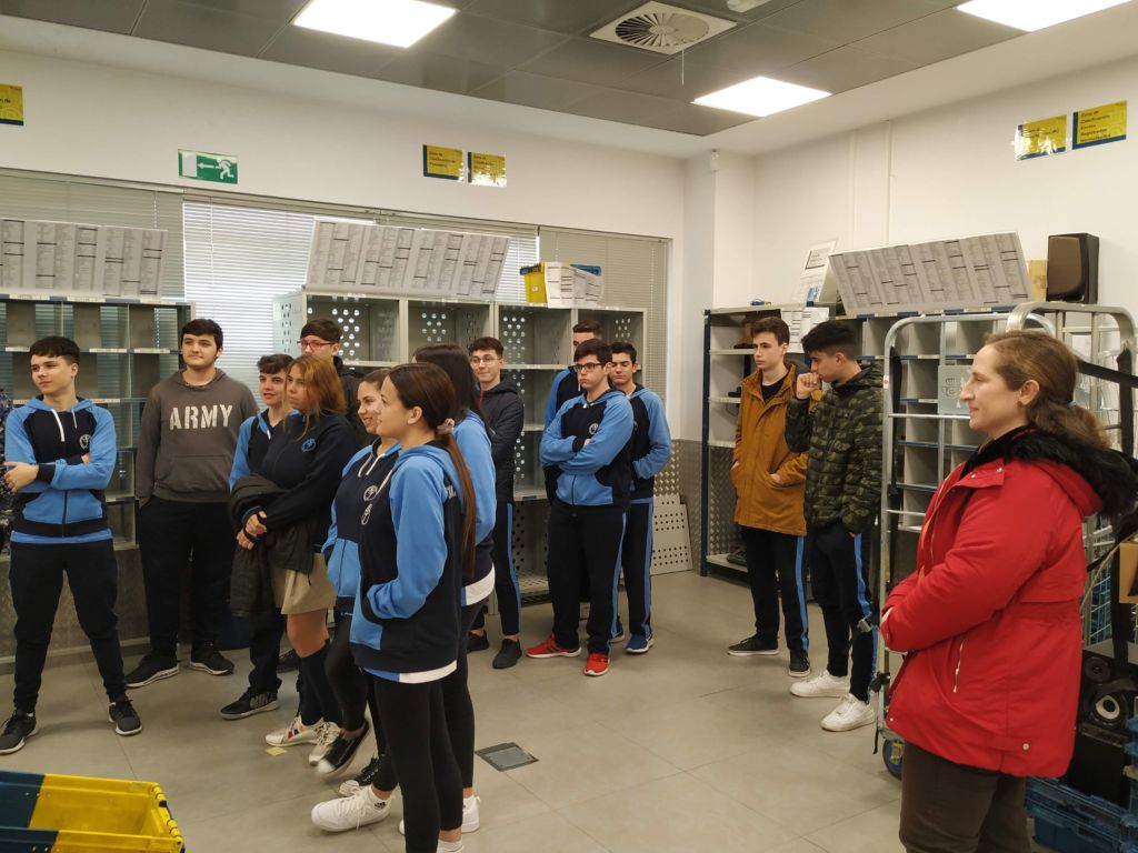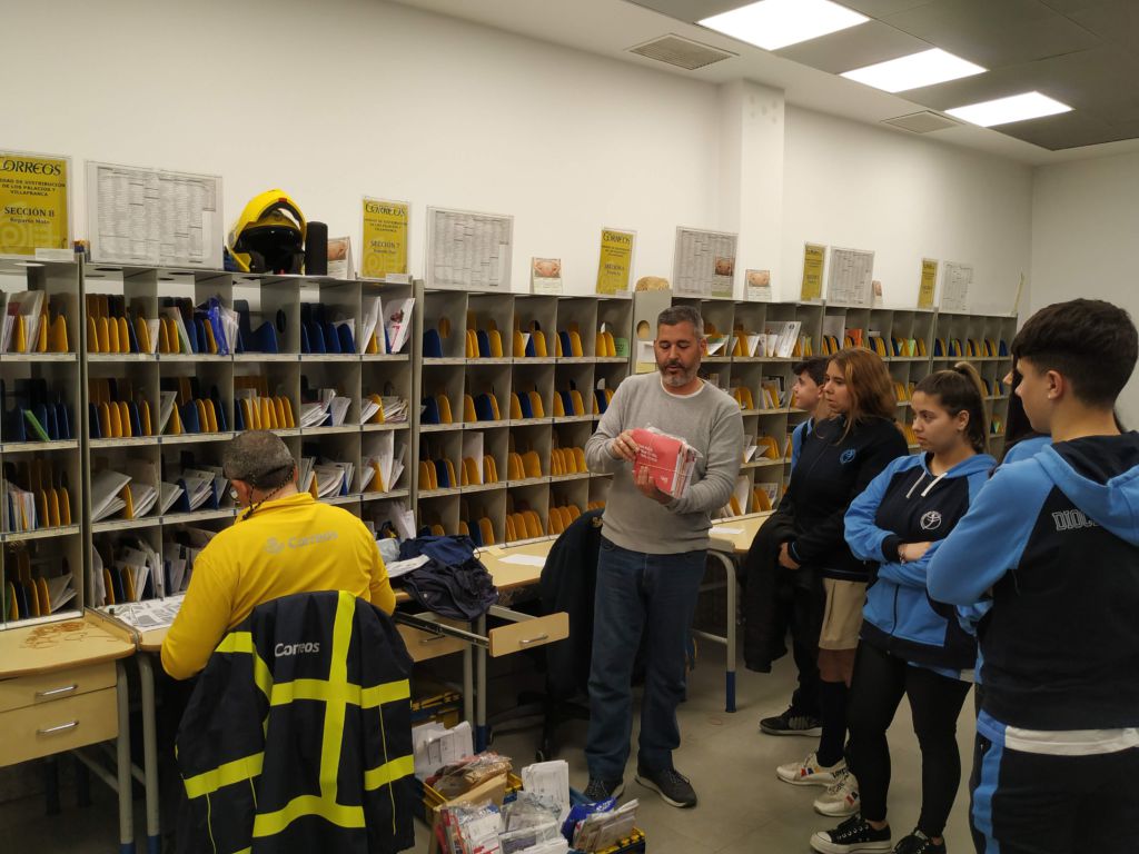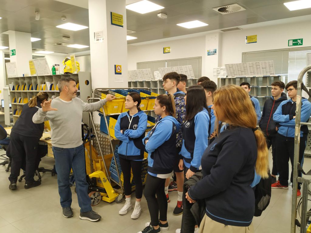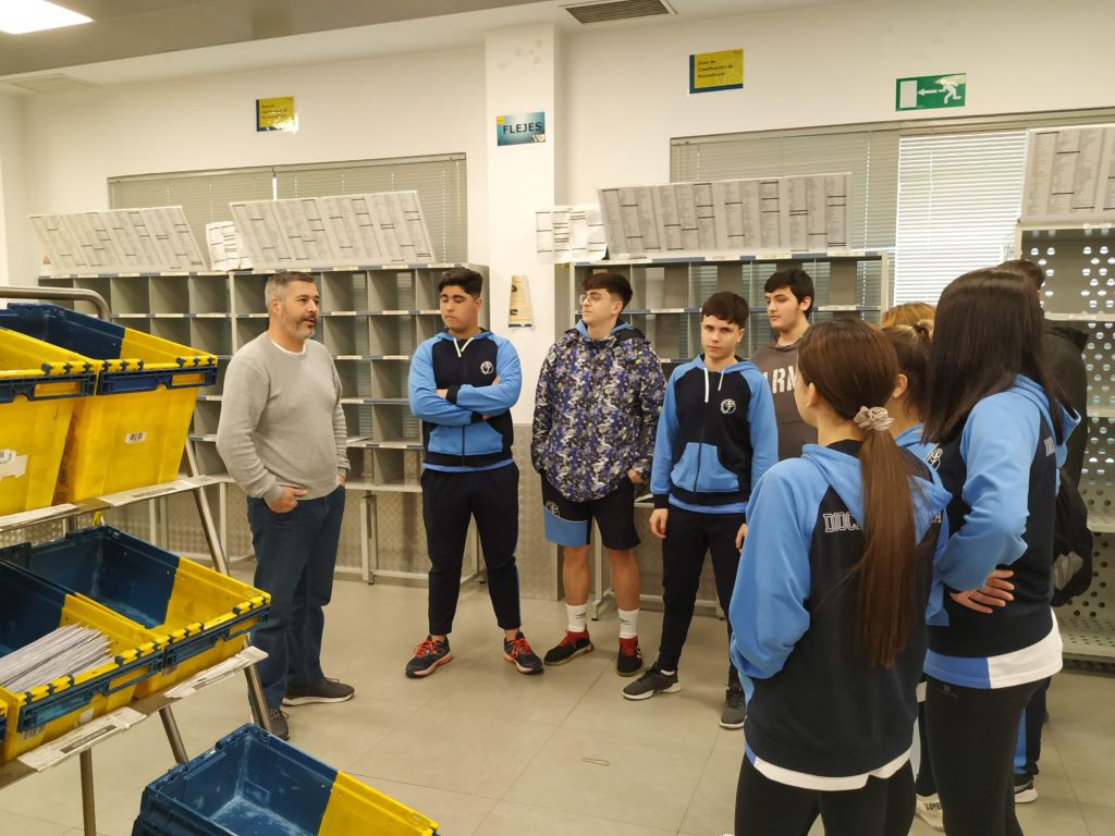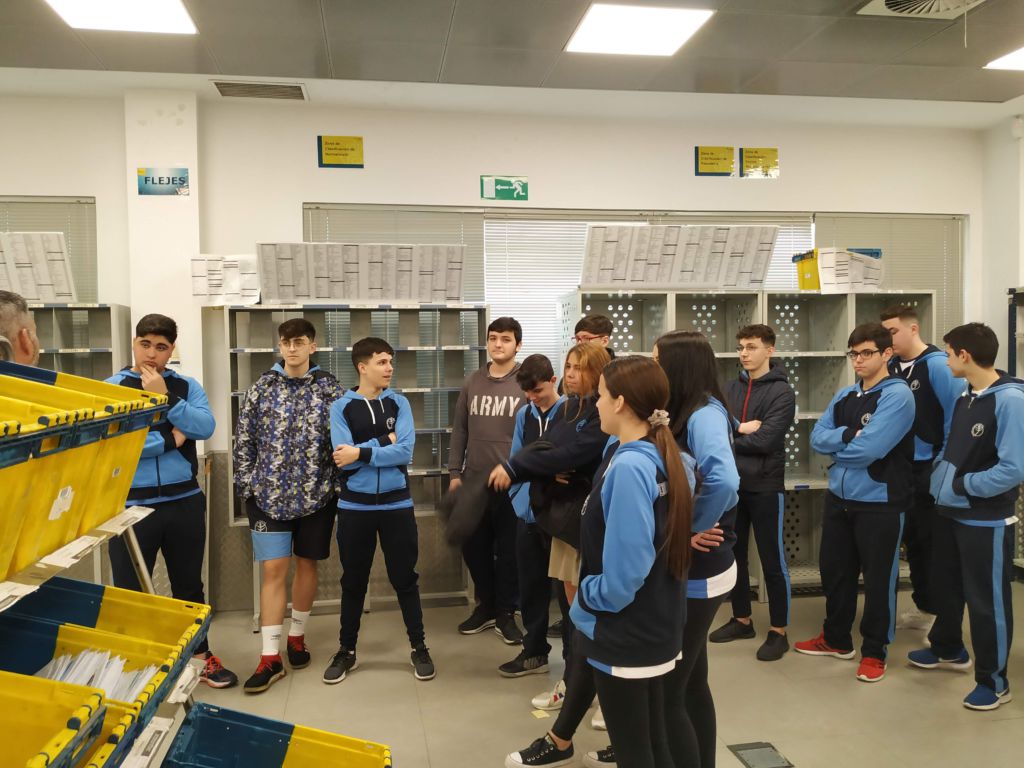 Dentro del Plan de Formación, ayer miércoles 12 de febrero, el alumnado de 1º FPB «Servicios Administrativos» visitó las instalaciones de CORREOS y recibió una sesión formativa sobre la organización, procedimiento y funcionamiento de la Unidad de Reparto.