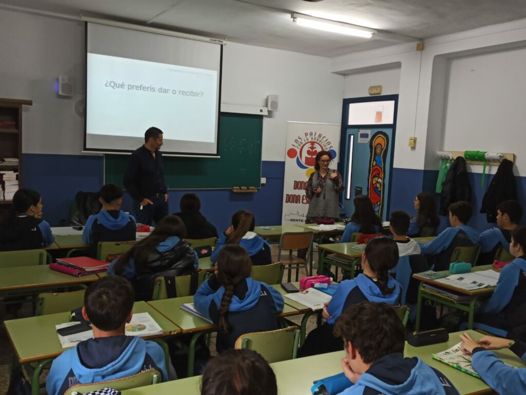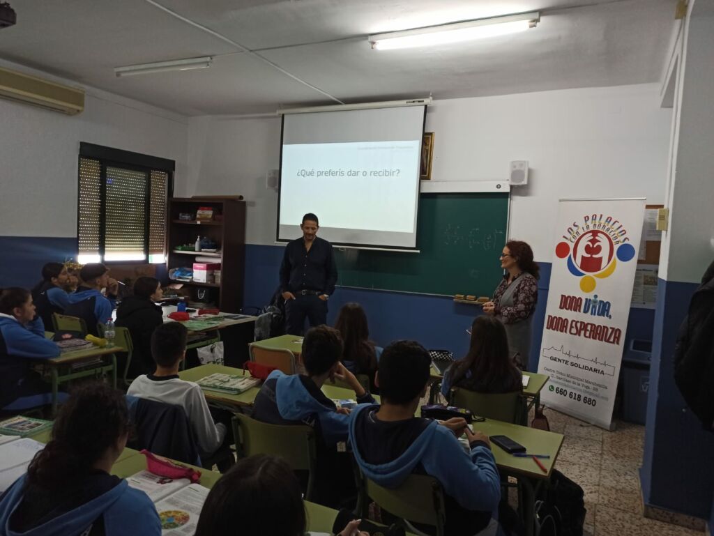 La Asociación Los Palacios con la Donación continúa con la labor de concienciación sobre la importancia de donar órganos, sangre y tejidos, sobre todo en el colectivo juvenil. Esta mañana llevaba una charla informativa a alumnos de 3º de la ESO del Colegio Diocesano Nuestra Señora de las Nieves.