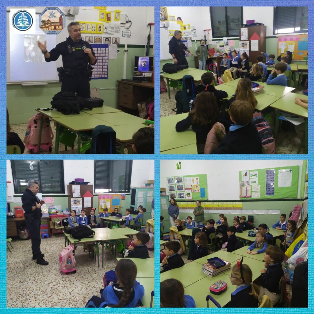 El pasado jueves 9 de marzo, nos visitó Fidel Báez (policía local, miembro de la AMPA y padre de alumna) para explicarnos en qué consiste su trabajo, cómo actuar en situaciones de peligro en casa, en el cole y cuál es el teléfono de emergencia.