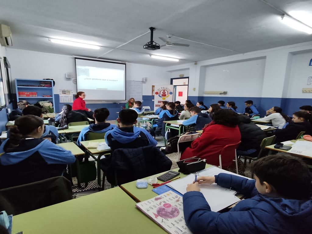 La charla informativa ha corrido a cargo de Manuela Cid, coordinadora sectorial de trasplantes de Sevilla y Huelva, y médico de la UCI del Hospital Virgen del Rocío. Durante su intervención a un grupo de alumnos de 3º de ESO ha transmitido la importancia de la concienciación social sobre la donación de órganos y su necesidad como tratamiento para algunas enfermedades. Además ha destacado que España es líder mundial en donación y trasplante de órganos.