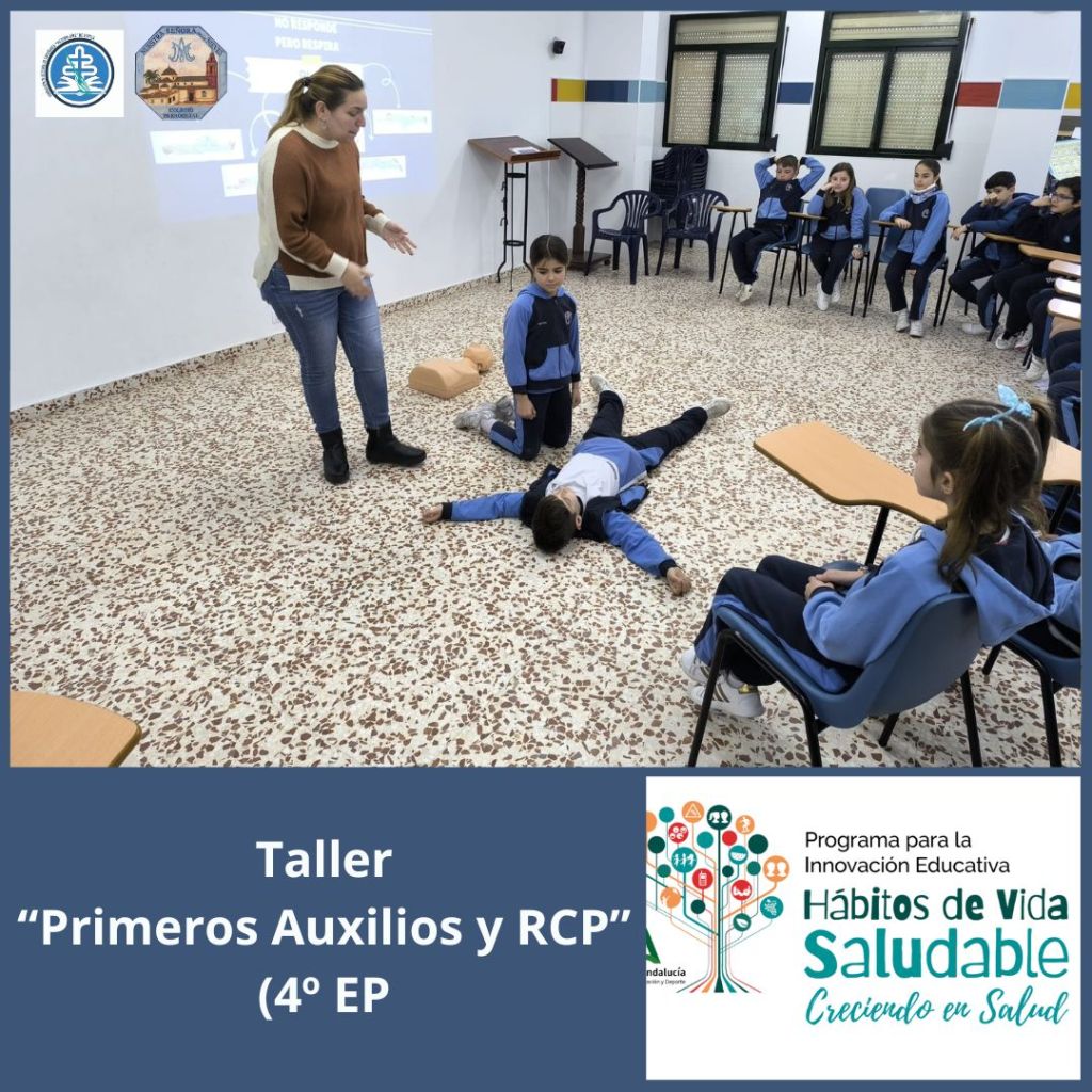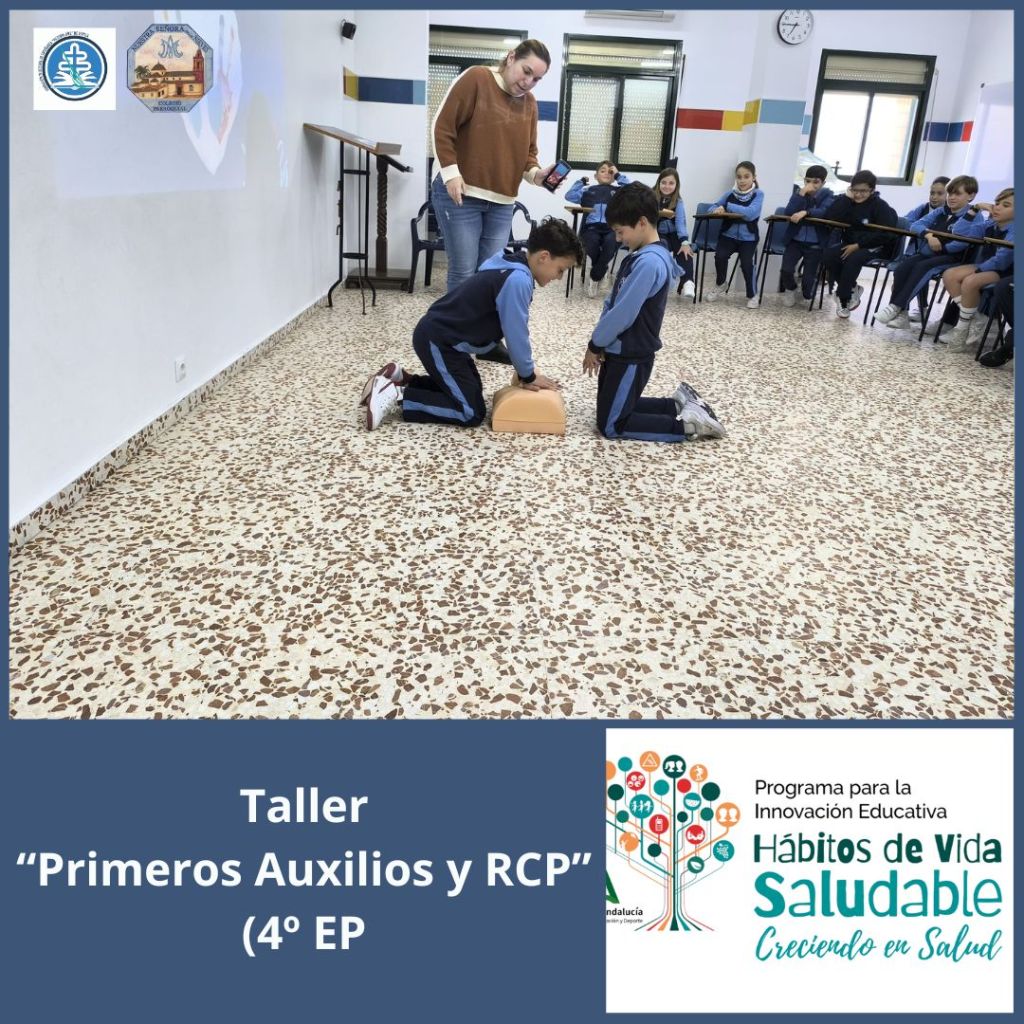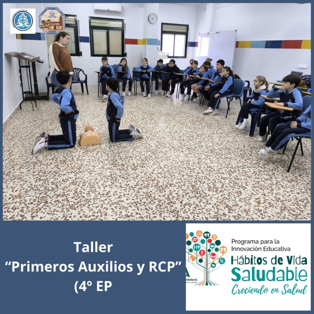 🔊 Esta mañana, nuestro alumnado de 4º de Ed. Primaria ha participado en el taller “Primeros Auxilios (SVB) y RCP”, una enriquecedora sesión formativa impartida por Cristina Dorado, enfermera escolar, dentro del Programa de Innovación Educativa de Promoción de Hábitos de Vida Saludable “Creciendo en Salud” 🌱.