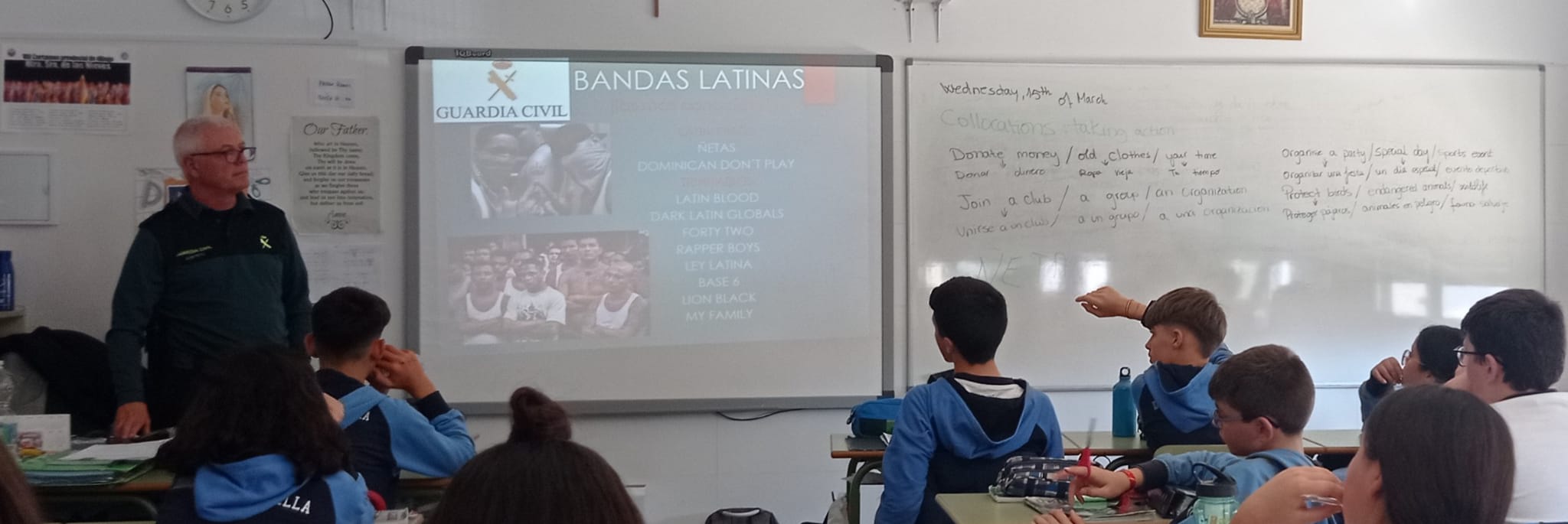 Dentro del Plan Director para la Convivencia y Mejora de la Seguridad, ayer, miércoles 15 de marzo, tuvo lugar una charla formativa dedicada a las «Bandas Juveniles», a la que asistieron el alumnado de 1º ESO.