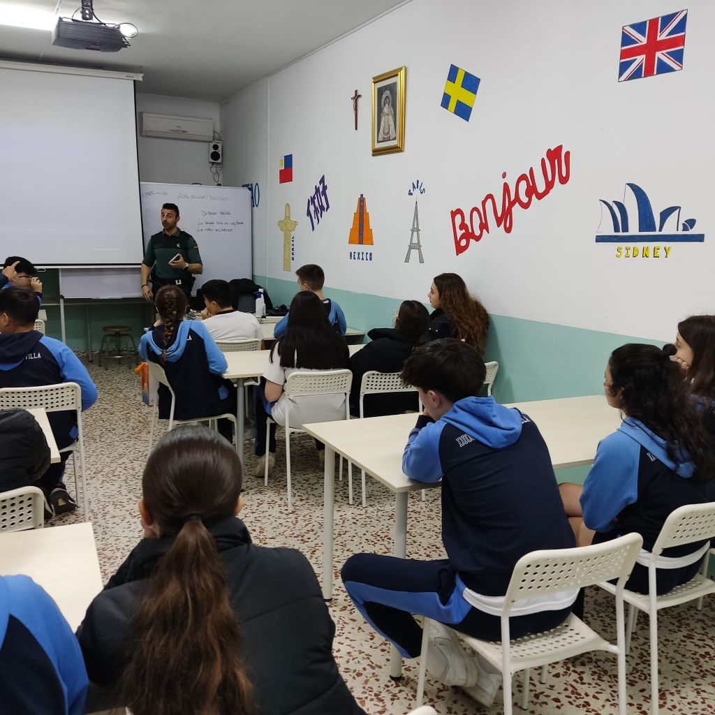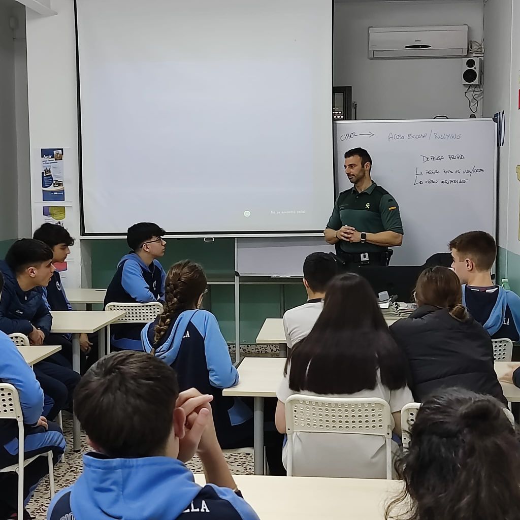 Dentro del Plan Director para la Convivencia y Mejora de la Seguridad, el viernes 16 de febrero, tuvo lugar una charla formativa dedicada al «Acoso Escolar», a la que ha asistido el alumnado de 1º y 3º ESO.