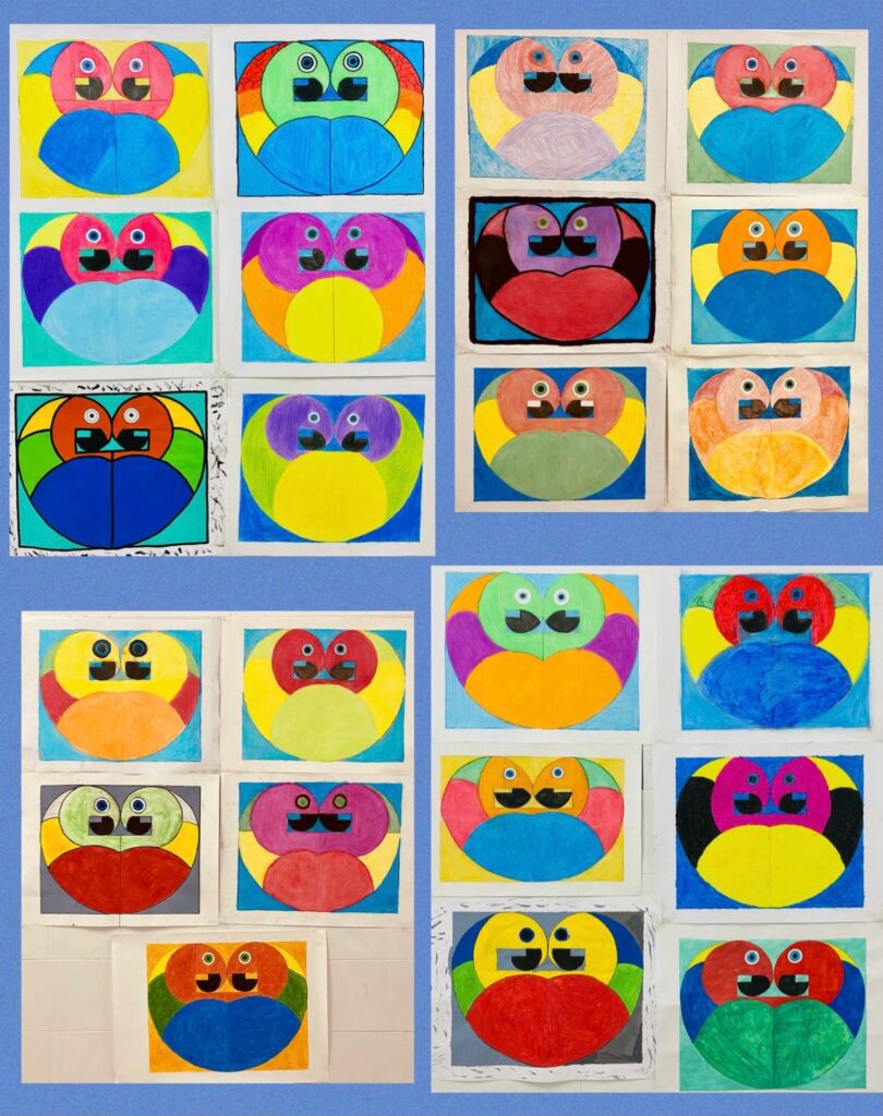 Los alumnos de Plástica de 2º ESO han utilizado la PROPORCIÓN ÁUREA para realizar el dibujo de dos loros simétricos.