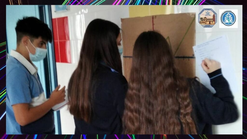 ?Los alumnos de matemáticas (2° ESO), realizan la tarea final de la UDI: «Las funciones» a partir de la tarea final realizada por el alumnado de Matemáticas Aplicadas (3º y 4º ESO) y que consistió en la construcción de la gráfica de una función teniendo en cuenta sus características principales y la representación en gran formato de la misma.