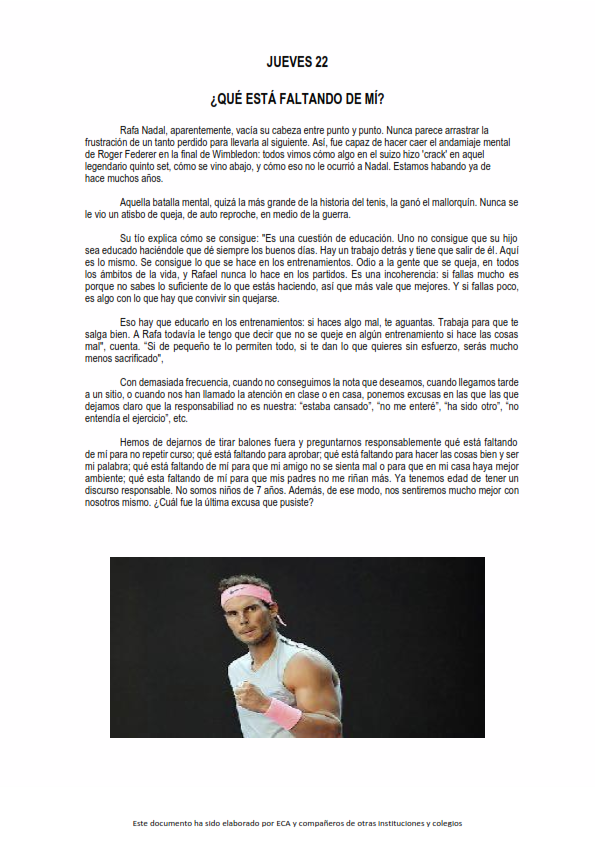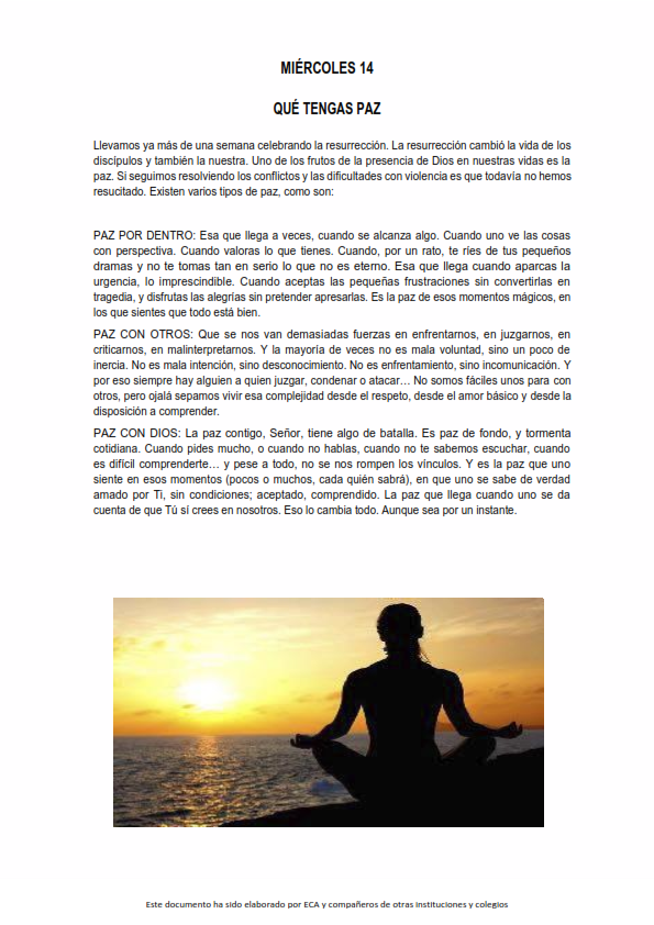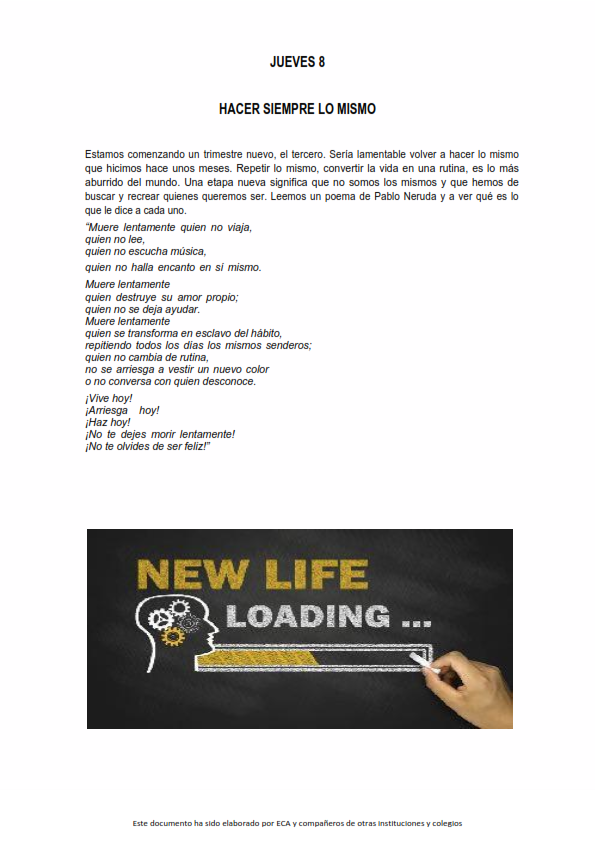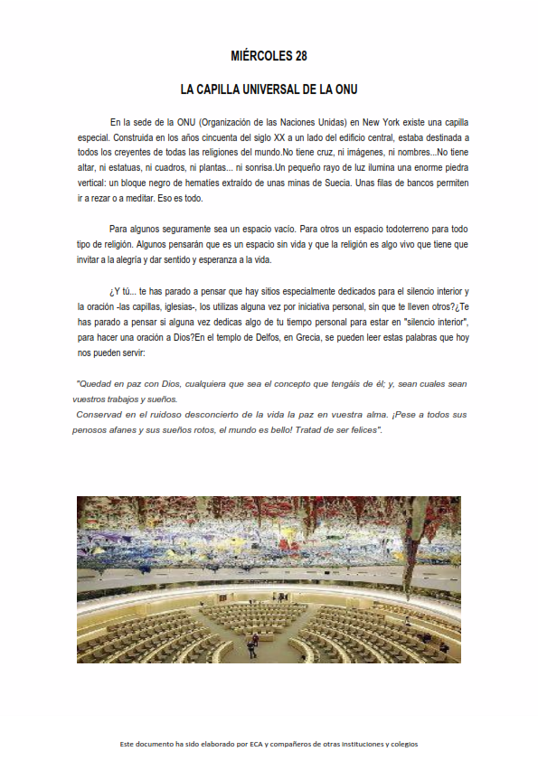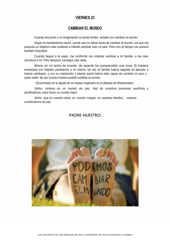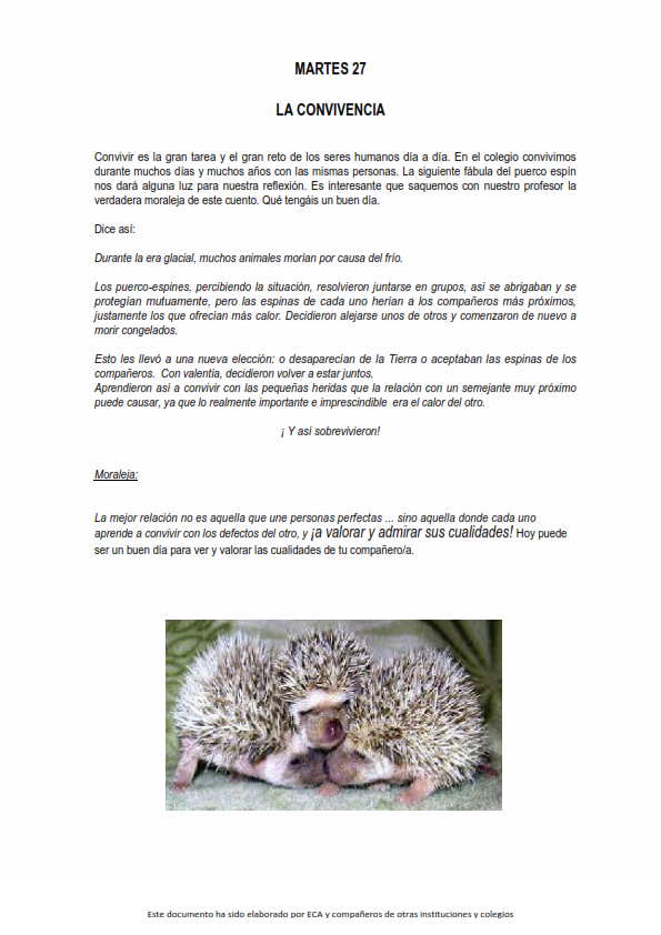 Os presentamos, unas reflexiones que el profesorado utiliza cada jornada para hacer reflexionar y orar al alumnado.