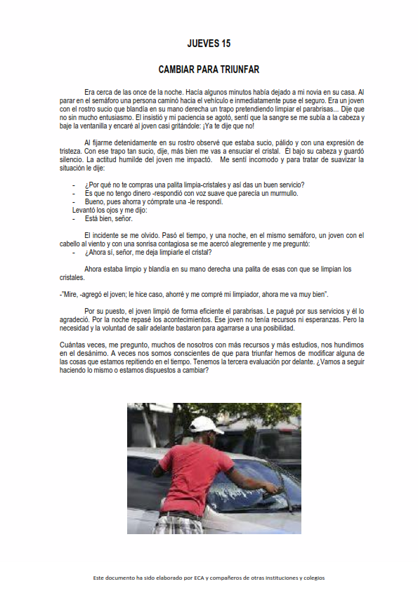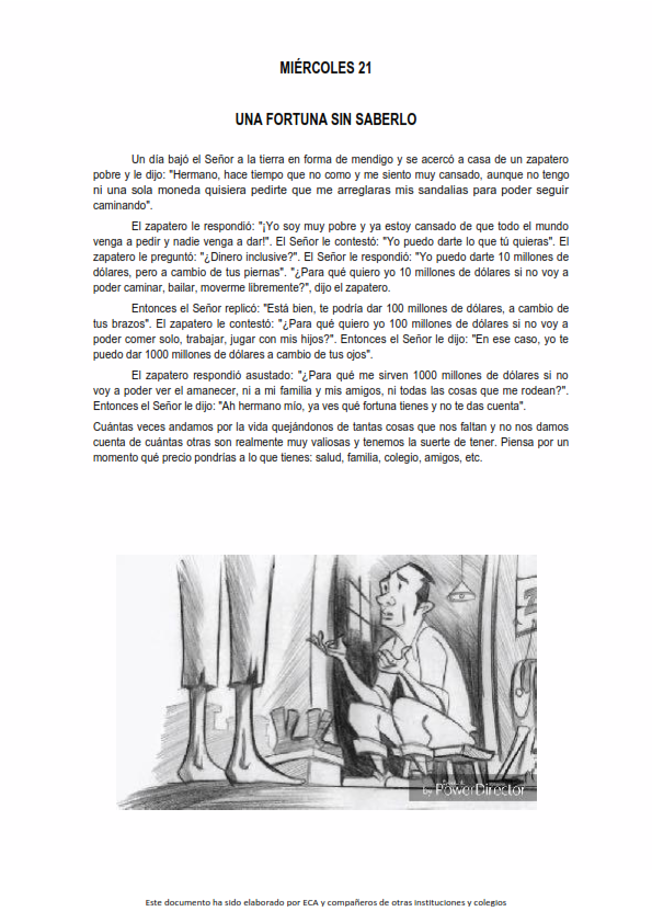 Se trata de parábolas, cuentos, apuntes sobre algún acontecimiento especial, fragmentos de la Palabra de Dios o cualquier texto que pueda servir para provocar el pensamiento, la contemplación y el alimento de nuestro espíritu y nuestra fe.