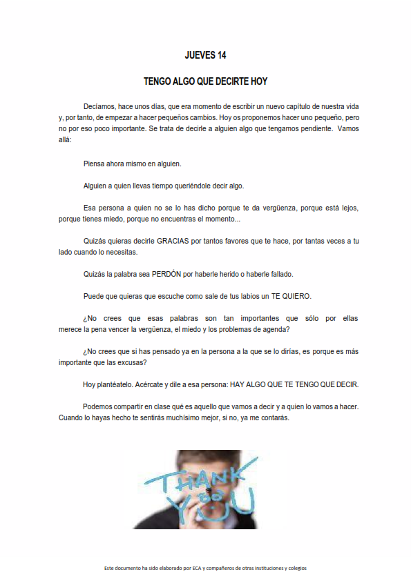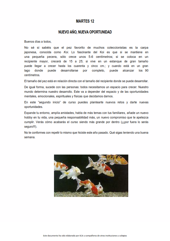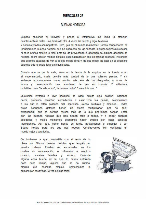 Os presentamos, unas reflexiones que el profesorado utiliza cada jornada para hacer reflexionar y orar al alumnado.