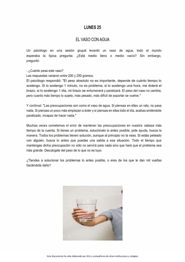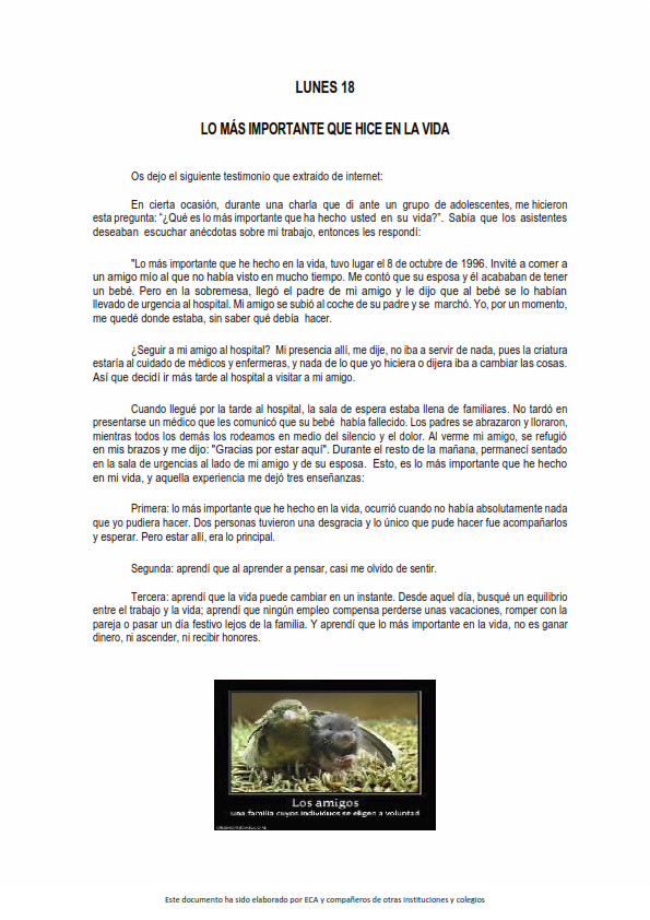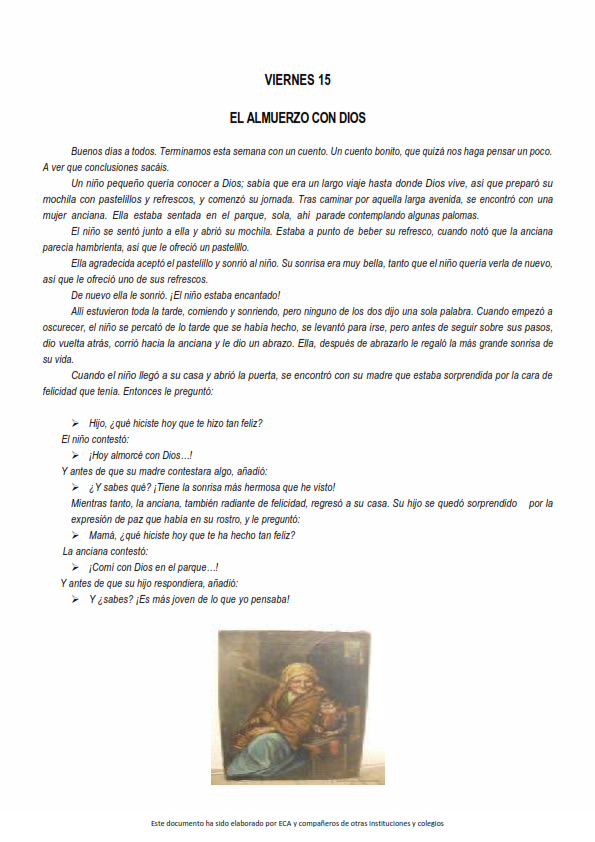 Se trata de parábolas, cuentos, apuntes sobre algún acontecimiento especial, fragmentos de la Palabra de Dios o cualquier texto que pueda servir para provocar el pensamiento, la contemplación y el alimento de nuestro espíritu y nuestra fe.