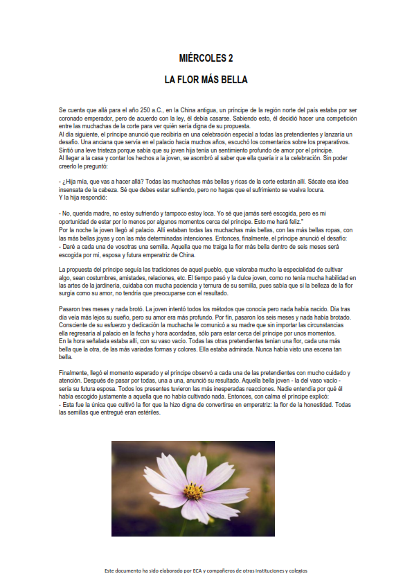 Se trata de parábolas, cuentos, apuntes sobre algún acontecimiento especial, fragmentos de la Palabra de Dios o cualquier texto que pueda servir para provocar el pensamiento, la contemplación y el alimento de nuestro espíritu y nuestra fe.