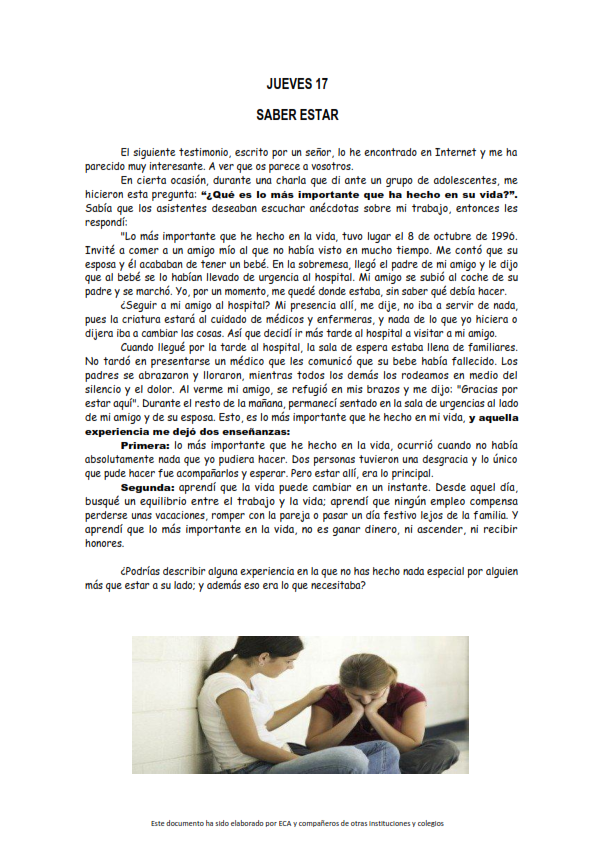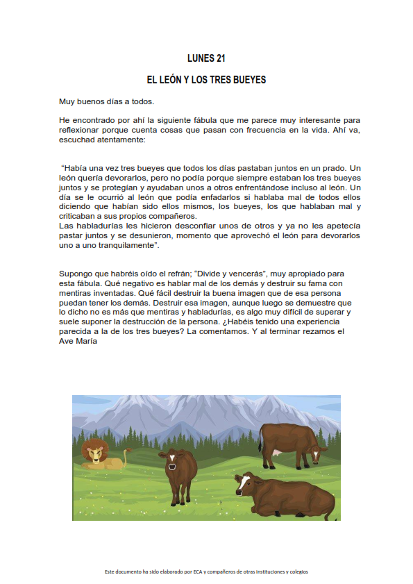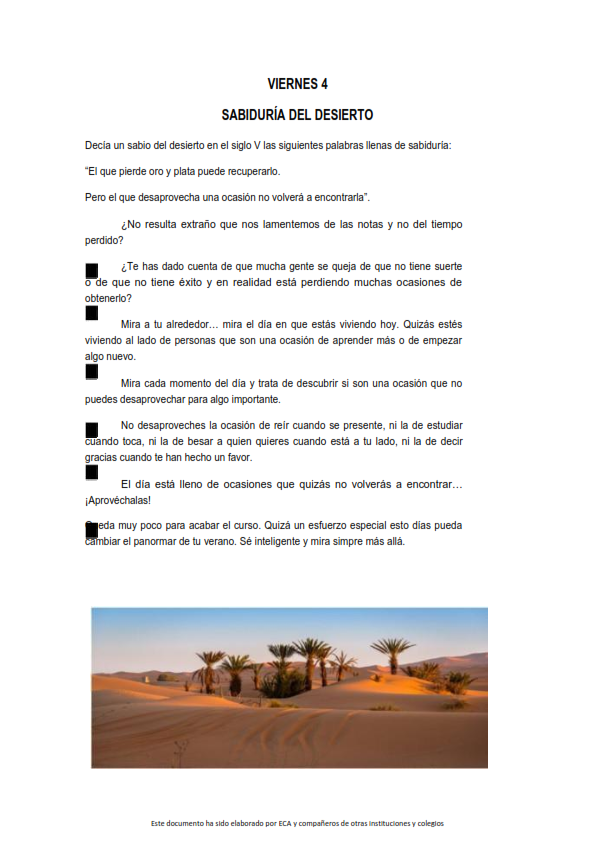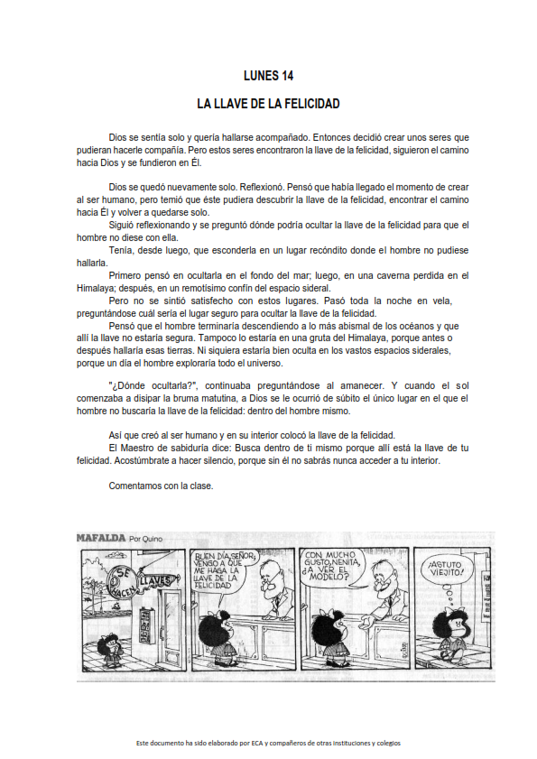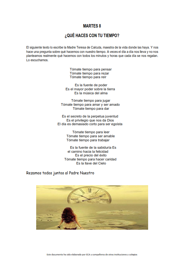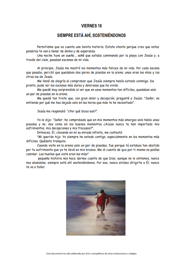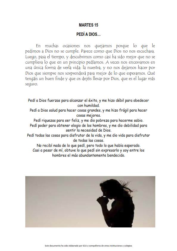 Os presentamos, unas reflexiones que el profesorado utiliza cada jornada para hacer reflexionar y orar al alumnado.