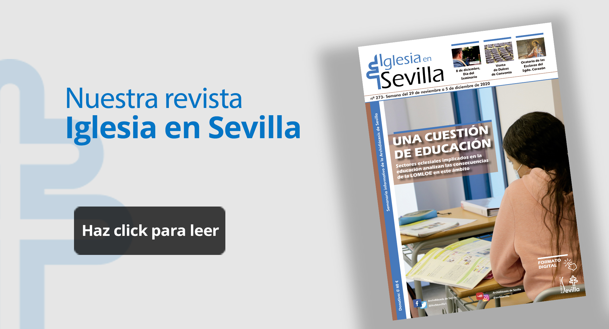 ✝️ Este fin de semana, la revista diocesana ? ‘Iglesia en Sevilla’ vuelve a quedarse ? en casa, para que puedas conocer la actualidad de la Archidiócesis.