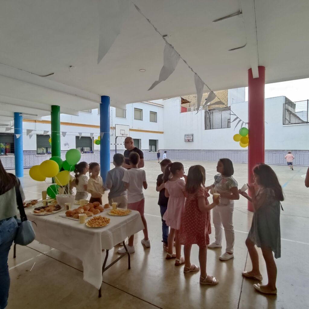 Posteriormente, para festejar la jornada, tuvo lugar una merienda muy especial en el patio del colegio a la que asistieron acompañados de sus padres, catequistas, tutor, profesores, etc.
