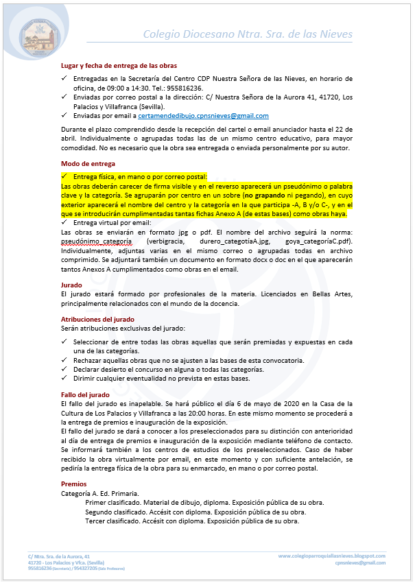 VI Certamen Provincial de Dibujo Ntra. Sra. de las Nieves’20