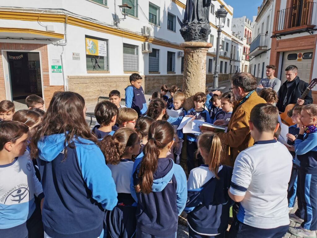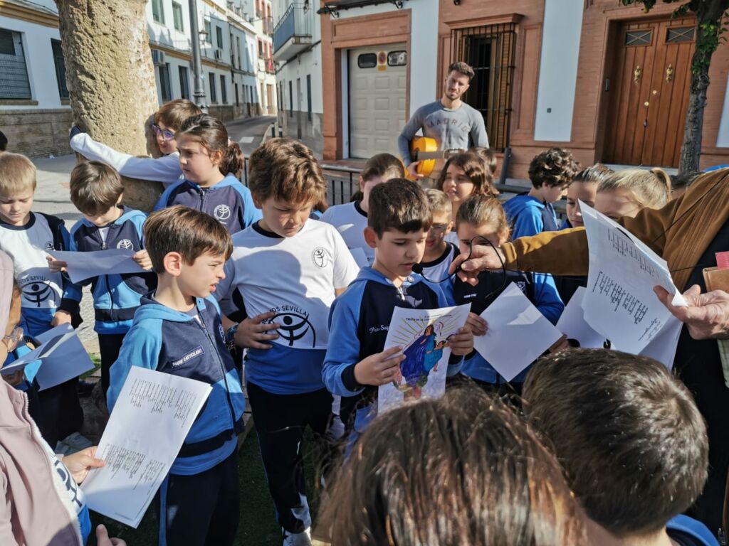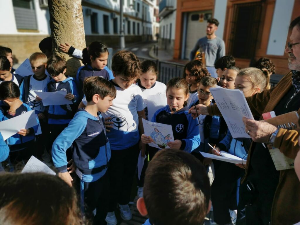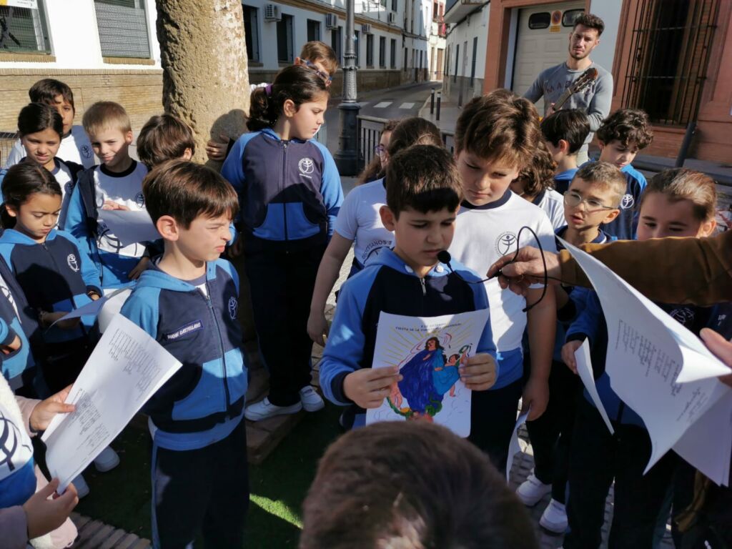 Como cada año por estas fechas, esta mañana, los niños de Educación Infantil y de Educación Primara salieron a la puerta a cantar a la Virgen Inmaculada que está enfrente del Colegio.