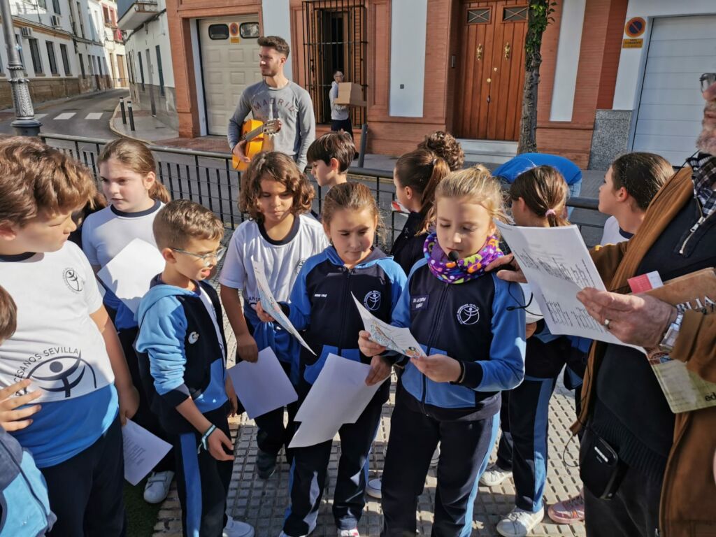 Han estado unos minutos cantando villancicos populares, rezando y recitando poemas a la Virgen María.