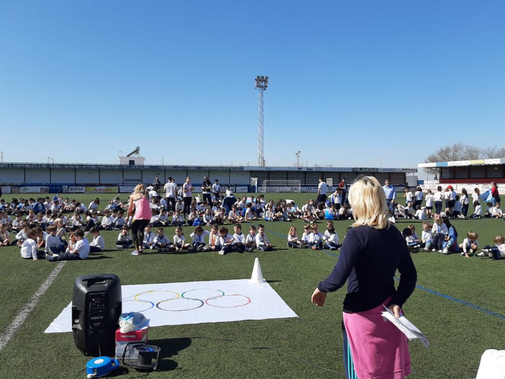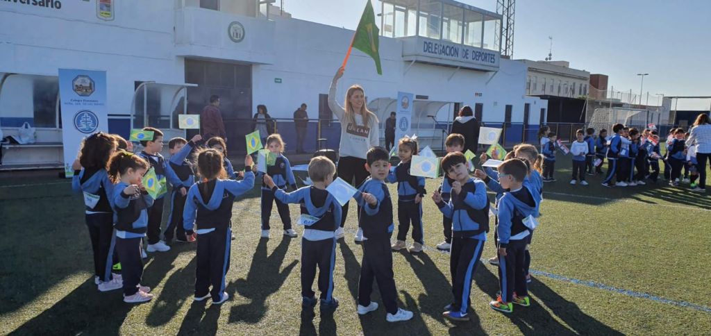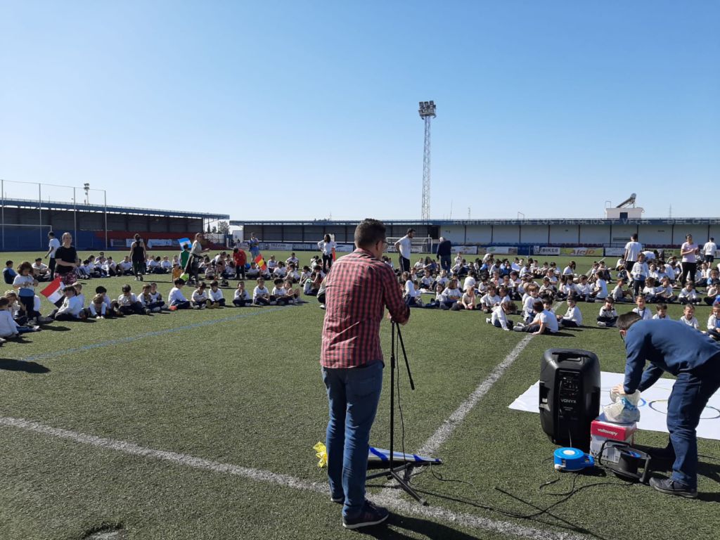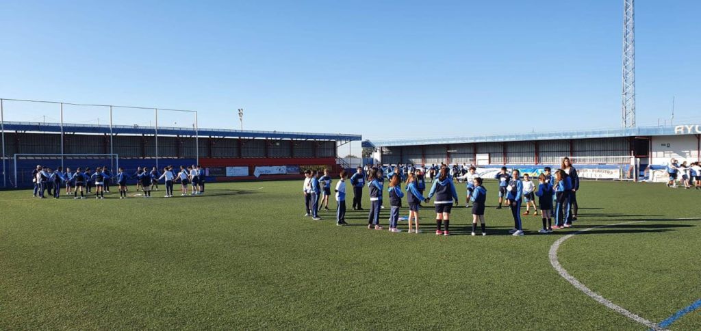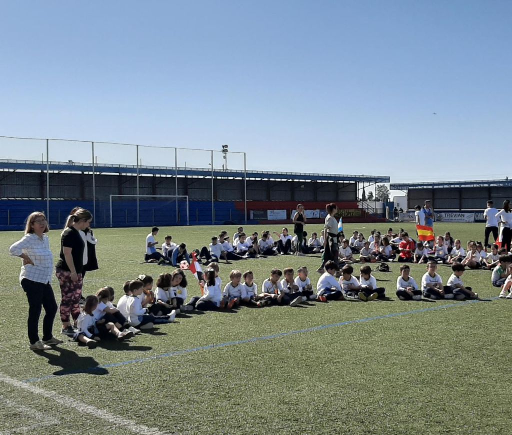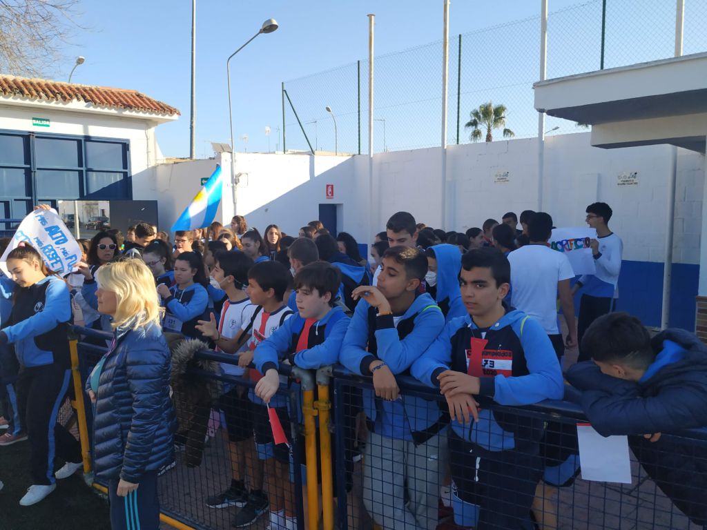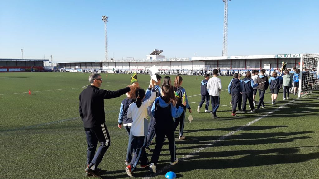 - Encendido de la antorcha y recorrido por el campo de fútbol. Un alumno de cada clase hizo un tramo por el campo de fútbol, desde EI 3 años a 1º FPB, hasta hacerla llegar junto a la bandera.