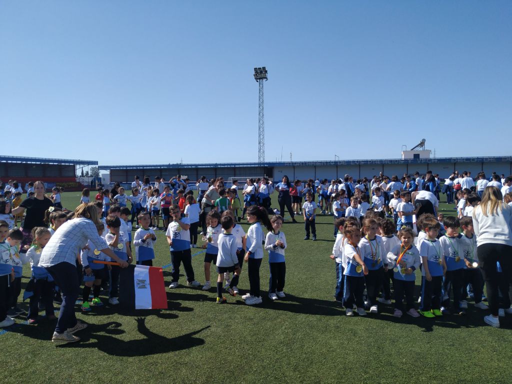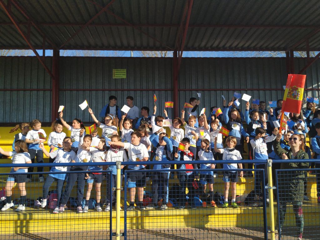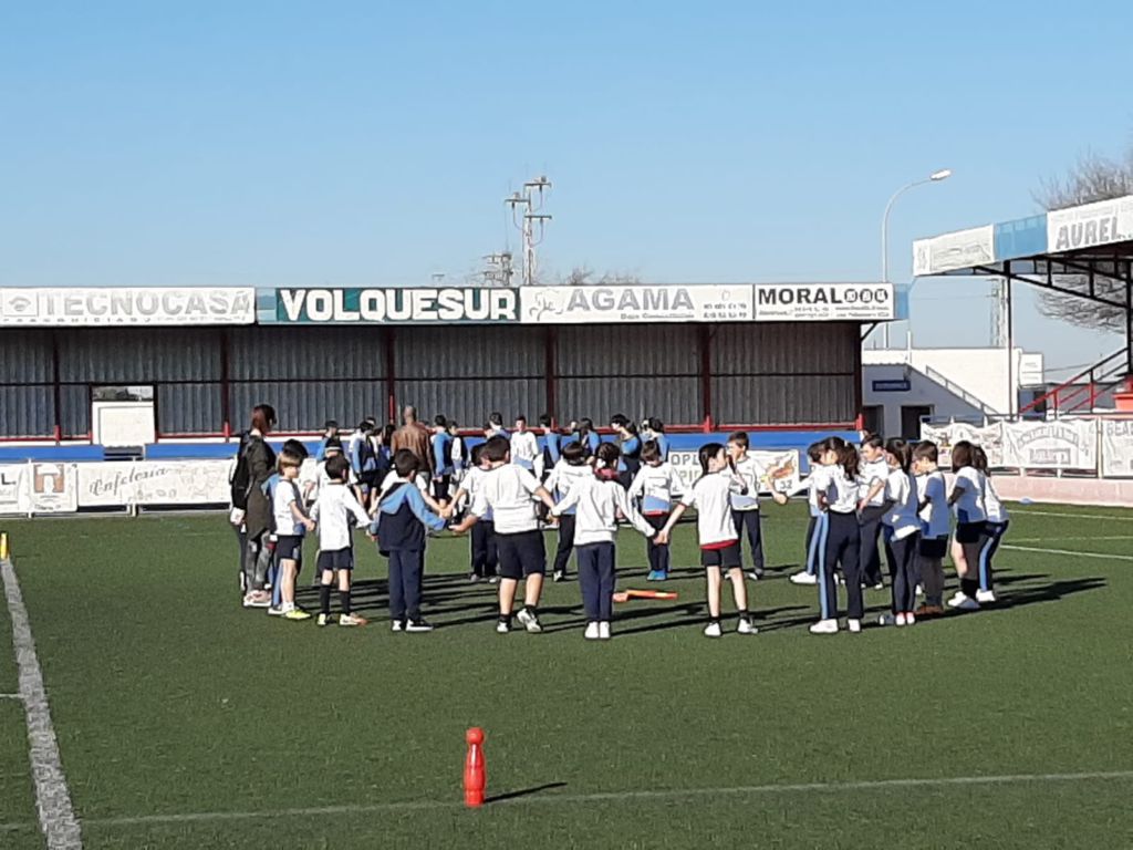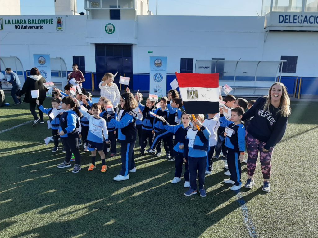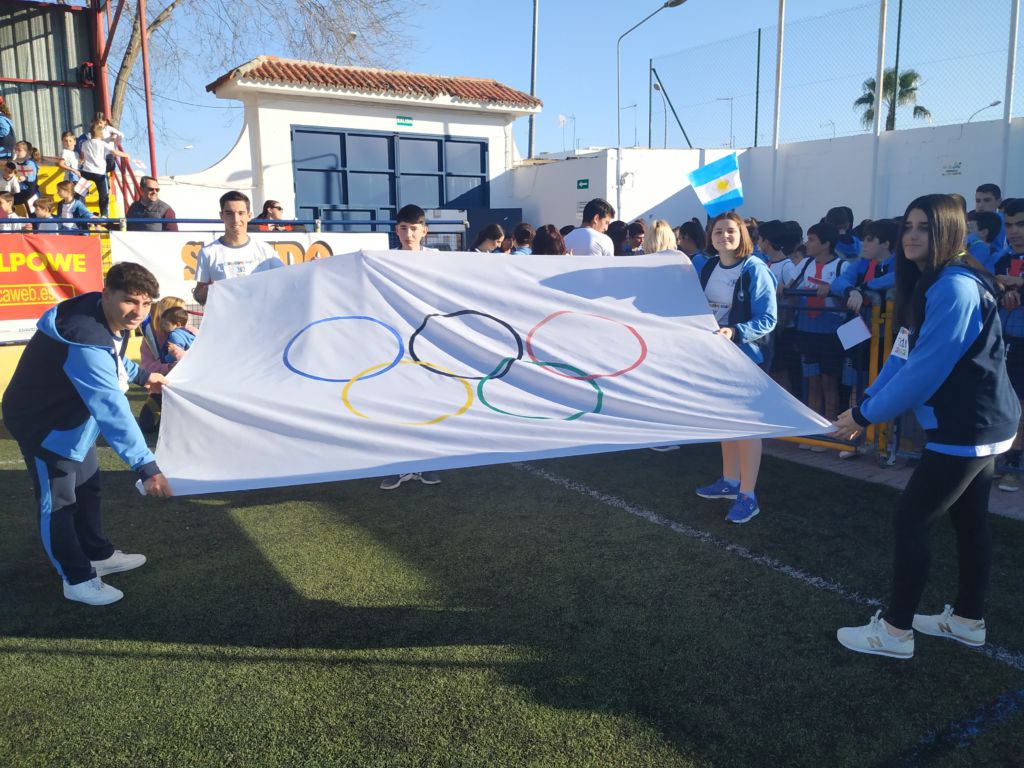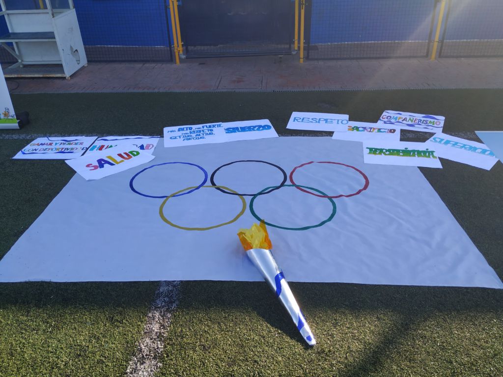 - Encendido de la antorcha y recorrido por el campo de fútbol. Un alumno de cada clase hizo un tramo por el campo de fútbol, desde EI 3 años a 1º FPB, hasta hacerla llegar junto a la bandera.