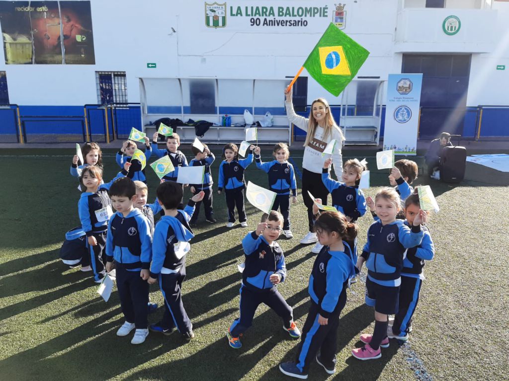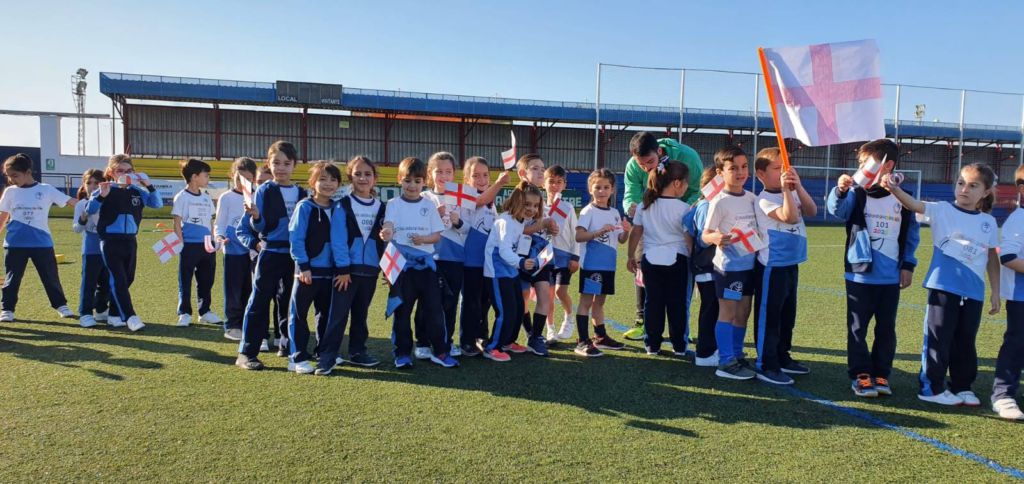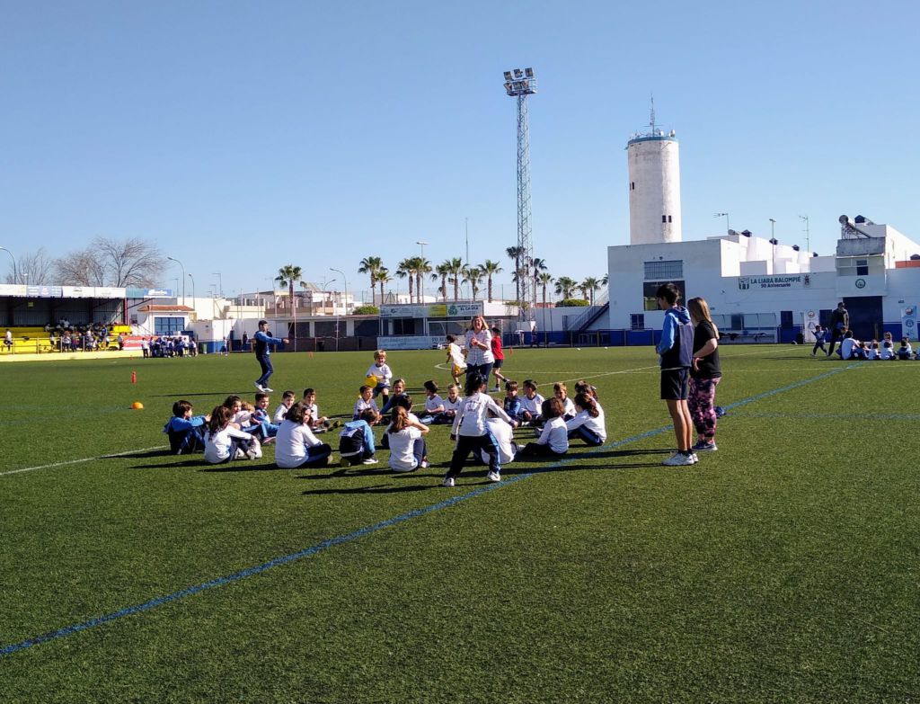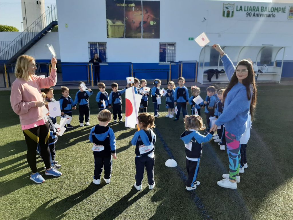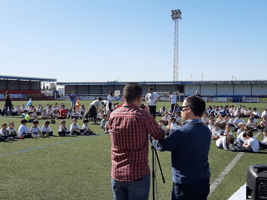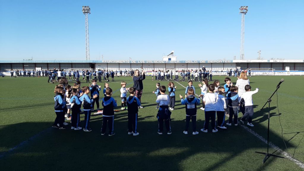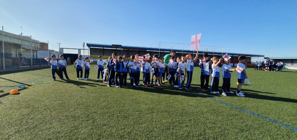 - Encendido de la antorcha y recorrido por el campo de fútbol. Un alumno de cada clase hizo un tramo por el campo de fútbol, desde EI 3 años a 1º FPB, hasta hacerla llegar junto a la bandera.