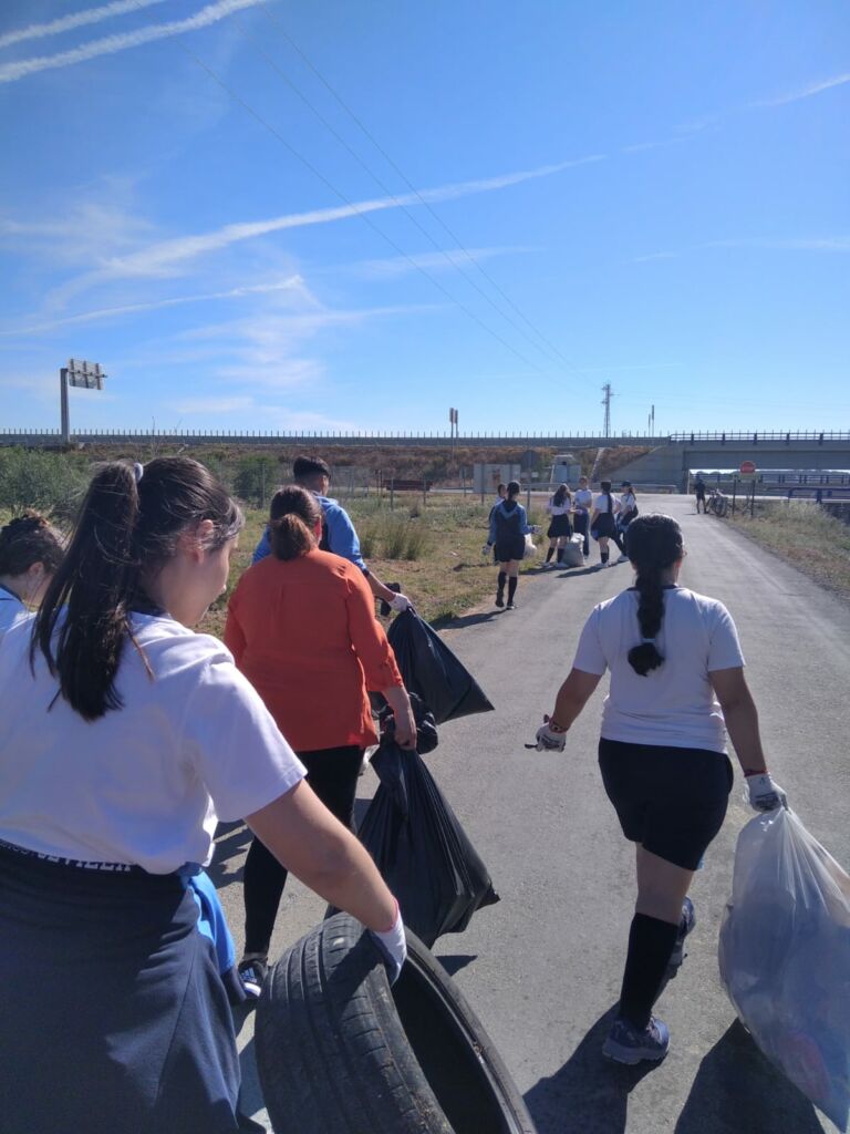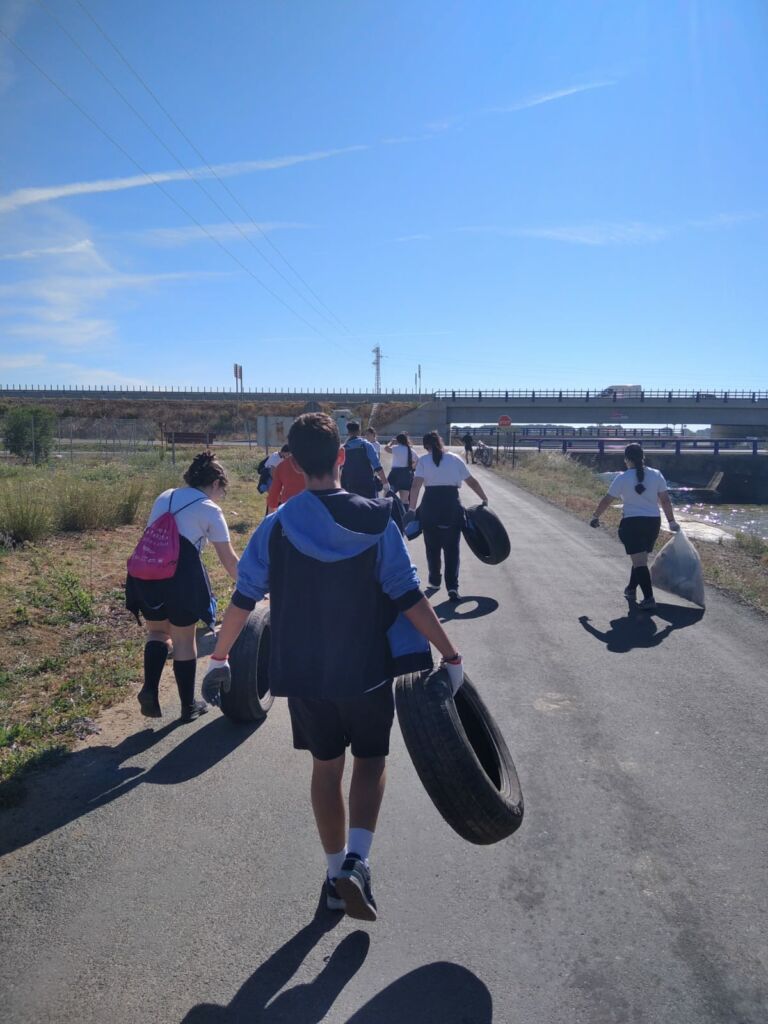 Sobre las 10 de la mañana, una docena de alumnos y alumnas de 4º de la ESO, del Centro Diocesano Nuestra Señora de las Nieves, de la asignatura de Ciencias Aplicadas, se desplazaban hasta el puente del Canal de los Presos, en la antigua carretera Nacional IV. Junto a ellos iba Amparo Ribelles, profesora de Matemáticas y encargada del Programa de Innovación Educativa «Aldea B» relacionado con el reciclaje, la recogida de basura y la concienciación ciudadana sobre el cuidado del medioambiente.